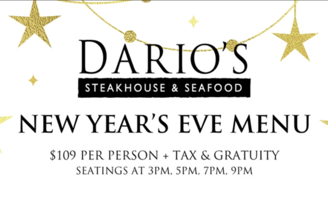 Dario’s Steakhouse & Seafood will celebrate New Year’s Eve with a refined three-course dining experience priced at $109 per person plus tax and gratuity. The special holiday menu showcases the restaurant’s signature steakhouse cuisine, perfect for an elegant night of celebration.