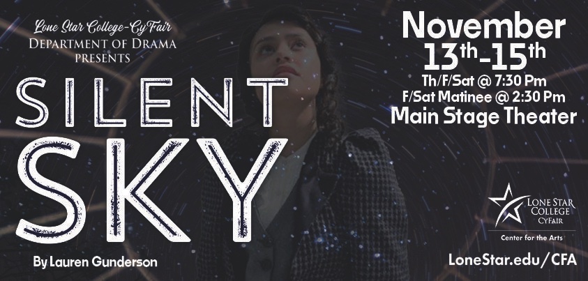November 13–15, 2025 – Silent Sky at Main Stage Theatre– Don’t miss Silent Sky, the inspiring true story of astronomer Henrietta Leavitt and her groundbreaking contributions to science during a time when women’s work often went unrecognized. This heartfelt and uplifting play by Lauren Gunderson follows Henrietta’s journey at the Harvard Observatory as she pursues discovery while balancing family and the possibility of love. Performances run Nov. 13–15 at 7:30 p.m., with a 2:30 p.m. matinee on Saturday at the Main Stage Theatre. Tickets available at LoneStar.edu/Boxoffice. Additional upcoming performances include concerts on Nov. 21, Dec. 2, and Dec. 5 — more info at LoneStar.edu/CFA.