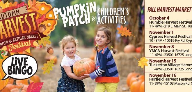- Nov. 1 – Cypress Harvest Festival – 10-3PM – 10519 Fry Rd. Cypress