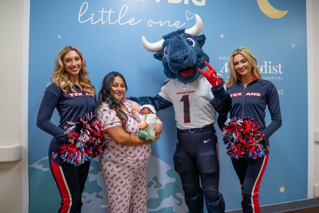 In true game-day fashion, the Houston Texans brought playoff excitement to Houston Methodist’s Childbirth Center at Willowbrook – scoring big with families and staff. Mascot TORO and Texans cheerleaders surprised new parents and their babies, Houston’s newest fans, with Texans onesies and photo opportunities.