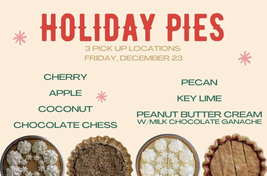 Hazel Loves Pie – Founded in 2018 with the goal of hand-making awesome pie, and with the directive to “do everything in love.” I’m a software engineer turned French culinary student, and my recipes are inspired by my travels and my enormous cookbook collection. Hazel Loves Pie is named for my grandmother Hazel, a hardworking farmer born in 1901. We have 7 pie flavors available for Christmas! 3 pickup locations in Cypress and The Woodlands on Dec 20, 21 & 23. Delivery also available! Order Here