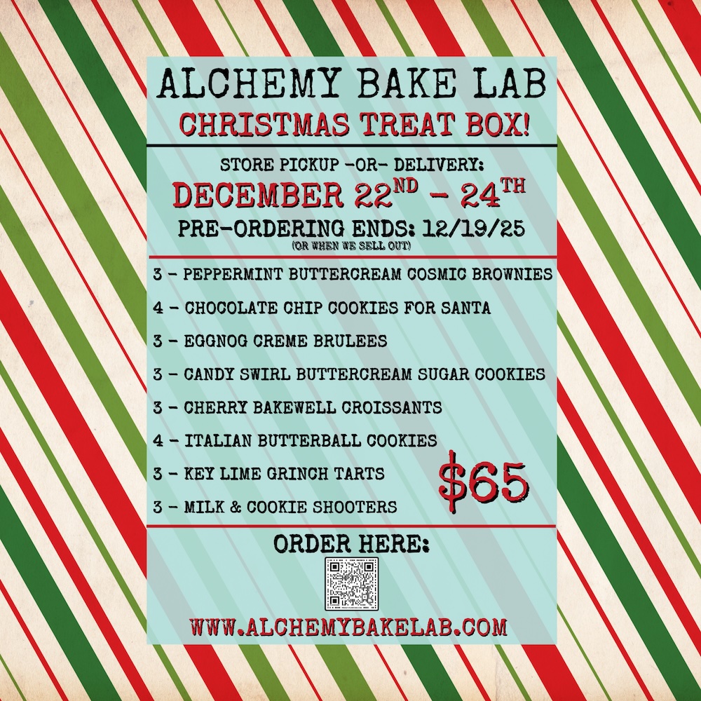 Alchemy Bake Lab Thanksgiving Treat Boxes – Get ready to sweeten your holiday with the most popular box of the year from Alchemy Bake Lab! Their Chritmas Treat Boxes are filled with festive desserts and seasonal favorites — perfect for sharing with family or enjoying yourself. These boxes always sell out fast, and once ordering closes, that’s it! This year, any unsold boxes will be donated to local families in need, spreading a little extra love and gratitude throughout the community. Owner Kady and her team are also offering to help families who may be struggling to provide a meal this Christmas — a beautiful reminder of the kindness and community spirit that make Cypress so special. Visit Alchemy Bake Lab at 6845 Peek Rd, Suite 230. Plan to pickup or choose delivery, order online by 12/19. Order Here