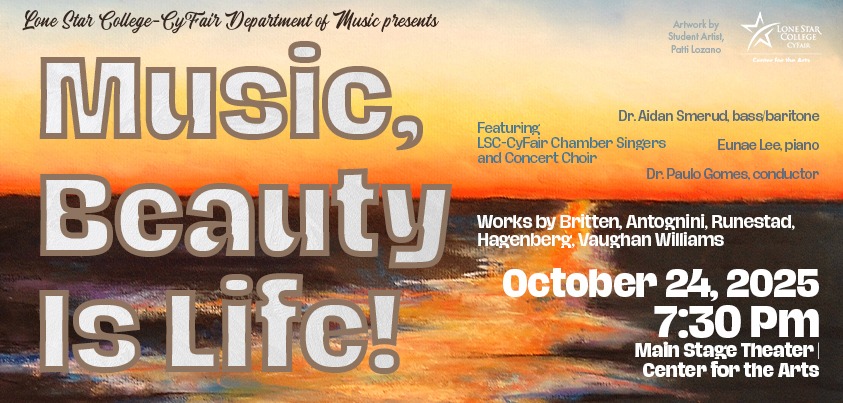 The Lone Star College-CyFair Music Department fall season gets underway with “Music, Beauty is Life” choral concert Oct 24.