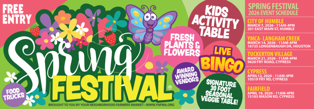 March 14 & 21, 2026 – Spring Festival – Celebrate the season at the Your Neighborhood Farmers Market Spring Festival 2026, a fun-filled day bringing the community together to shop local and enjoy the best of spring. Guests can explore fresh produce, artisan goods, handmade products, delicious food vendors, and family-friendly activities in a lively outdoor market atmosphere. It’s the perfect way to support small businesses, connect with neighbors, and enjoy a beautiful spring day right here in the Cypress area. Learn More